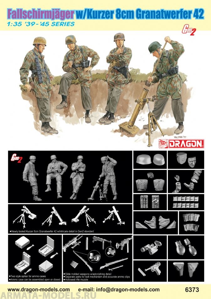 6373Д Немецкие парашютисты с 8 см минометом Dragon, 1/35 в Хабаровске, купить в интернет-магазине, цены, фото