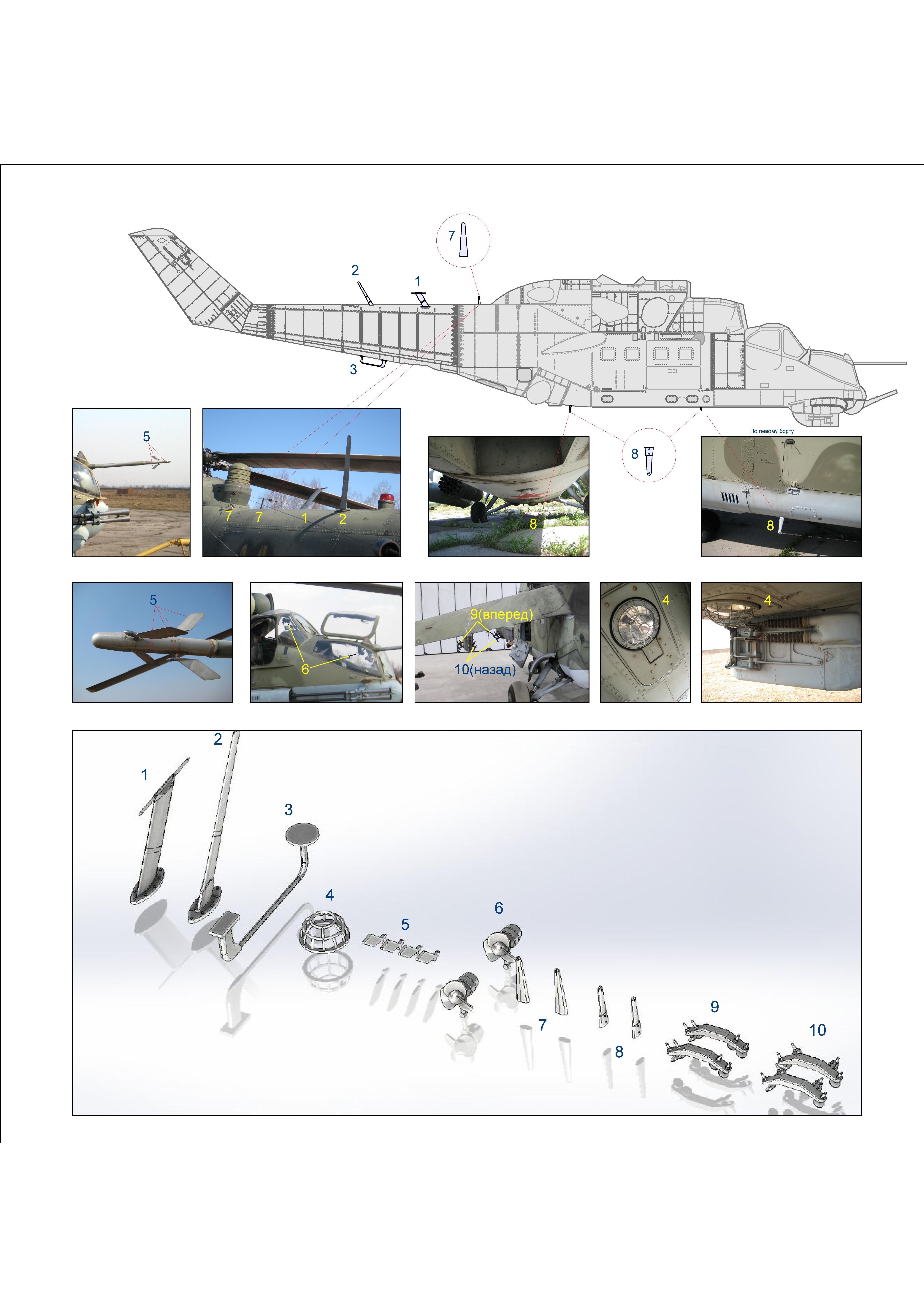 Набор деталей из пластмассы для сборки одной модели вертолета.